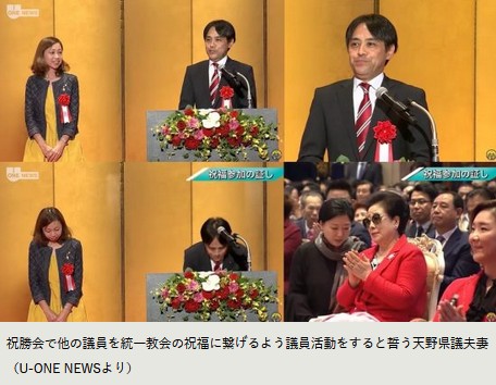 統一教会4万人集会と祝勝会に出席、合同結婚式を受け議員への伝送を誓う